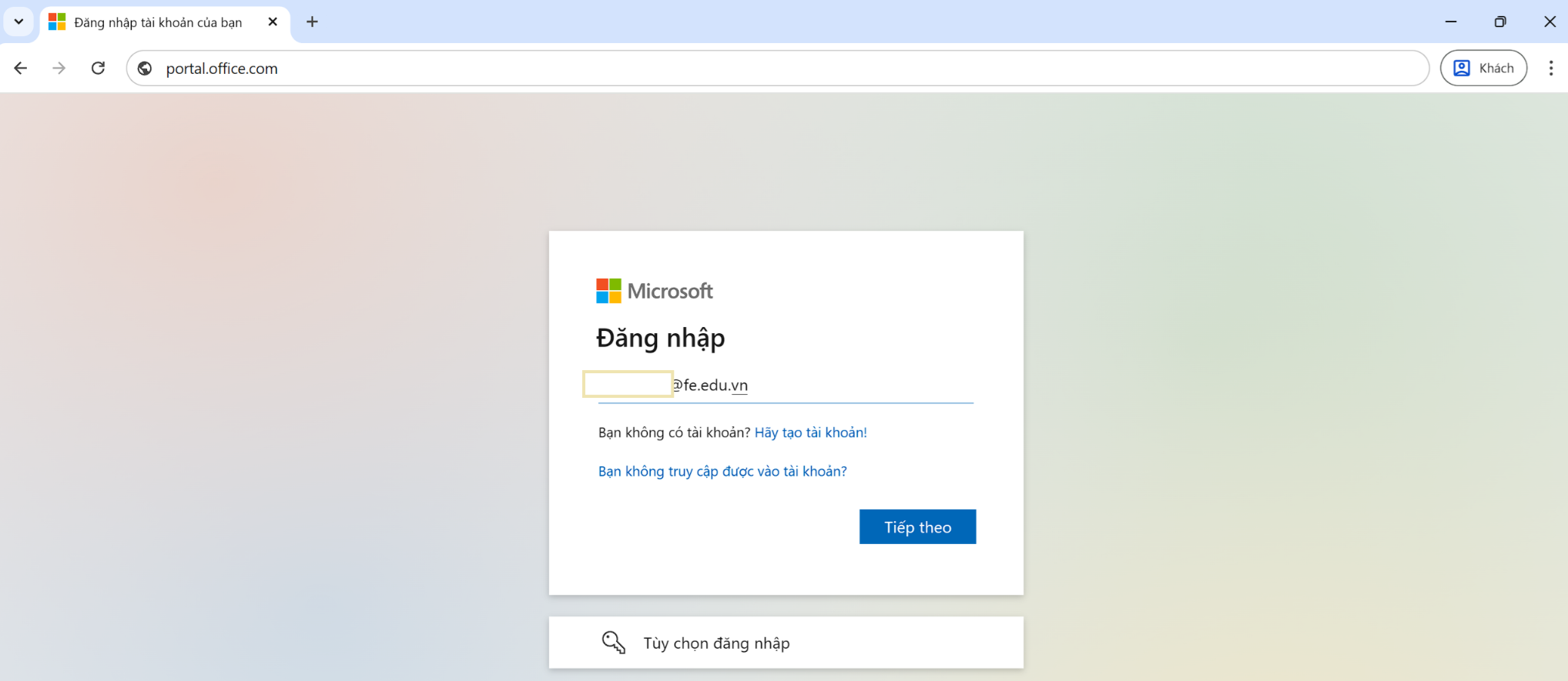 Đăng nhập email @fe.edu.vn vào trang portal.office.com