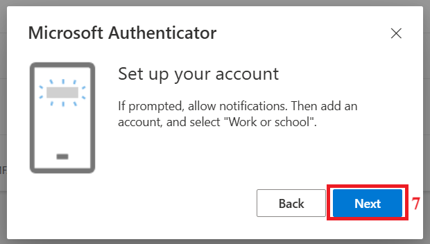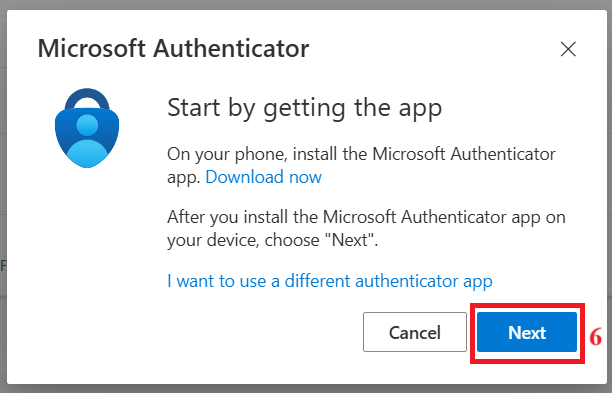 Chọn “Microsoft Authenticator” – Chọn “Next” – Chọn “Next” – Dùng điện thoại mở ứng dụng “Authenticator”