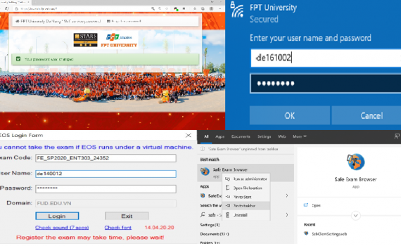 *Mô tả: Khi mở SEB màn hình xuất hiện lỗi Page Load Error khiến người dùng không thể đăng nhập được Cách xử lý: – Tắt phần mềm SEB, kiểm tra và thực hiện kết nối lại wifi – Lưu ý: sử dụng wifi “FPT University” hoặc wifi “Guest”. Không […]