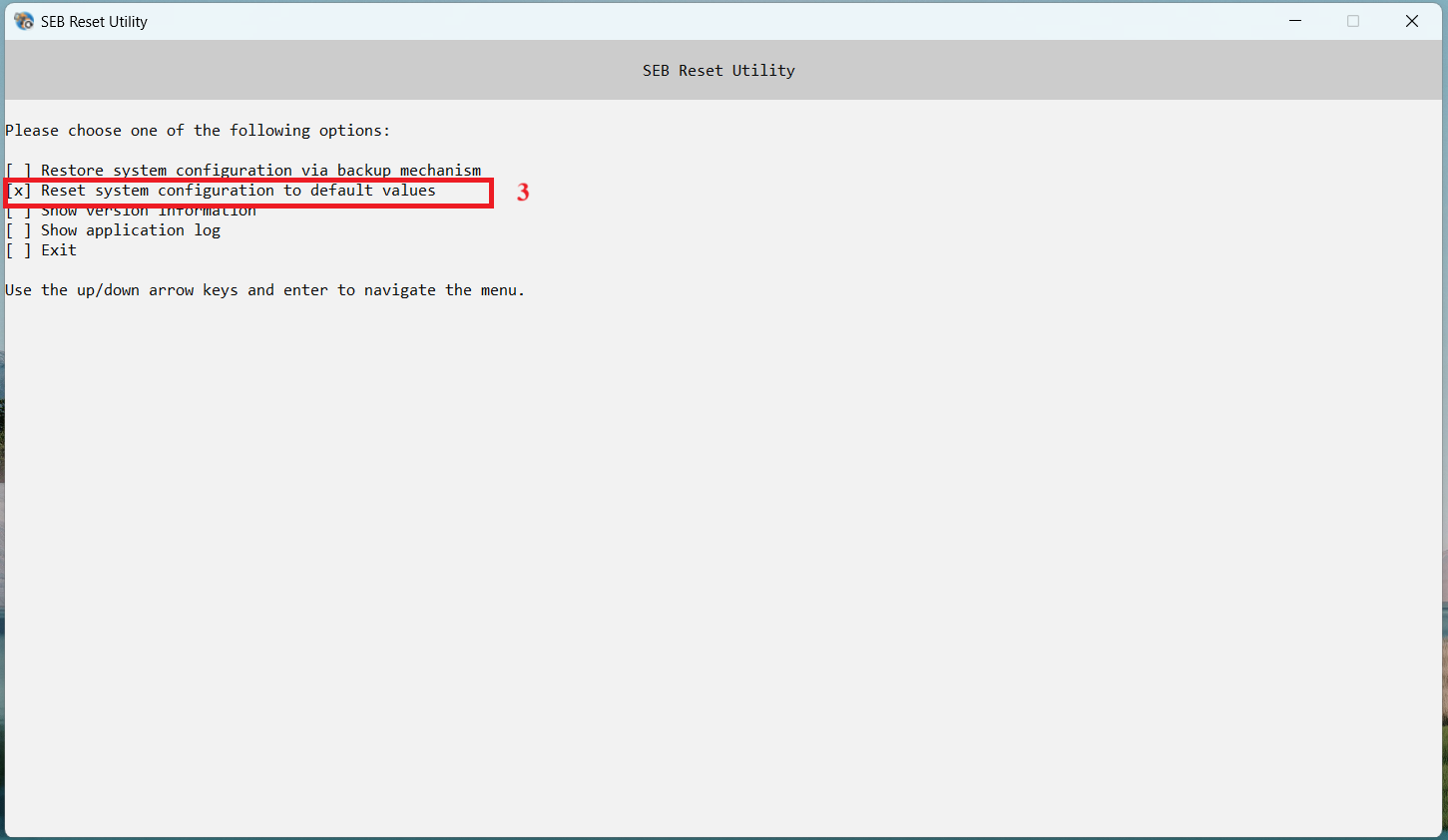 Di chuyển chọn mục “Reset system configuration to default values” – “Enter”