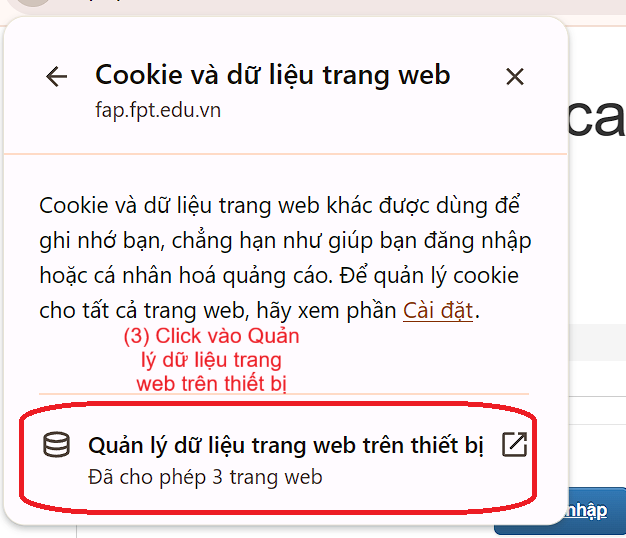 - Click vào (3) Quản lý dữ liệu trang web trên thiết bị