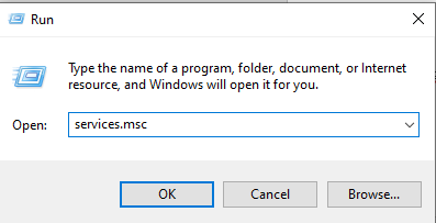 1. Sử dụng thanh tìm kiếm của Windows hoặc dùng tổ hợp phím Windows+R để mở cửa sổ RUN, sau đó nhập services.msc, click OK để mở cửa sổ Services của Windows.