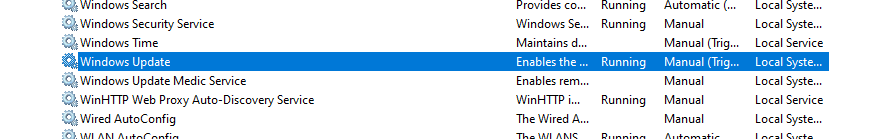 2. Tìm đến Services Windows Update để kiểm tra trạng thái của dịch vụ này. Nếu trạng thái là running ta thực hiện tiếp bước 4. Nếu không ta thực hiện bước 3 để chạy dịch vụ này.