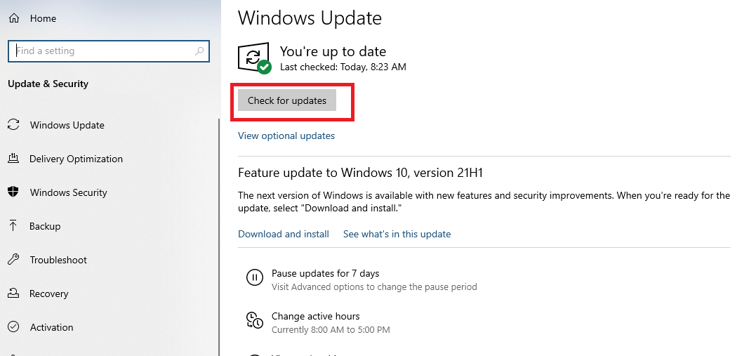 5. Ở cửa sổ Windows Update, chọn Check for Update và đợi Windows cập nhật phiên bản cho đến phiên bản mới nhất thì dừng và thực hiện cài lại phần mềm SEB.