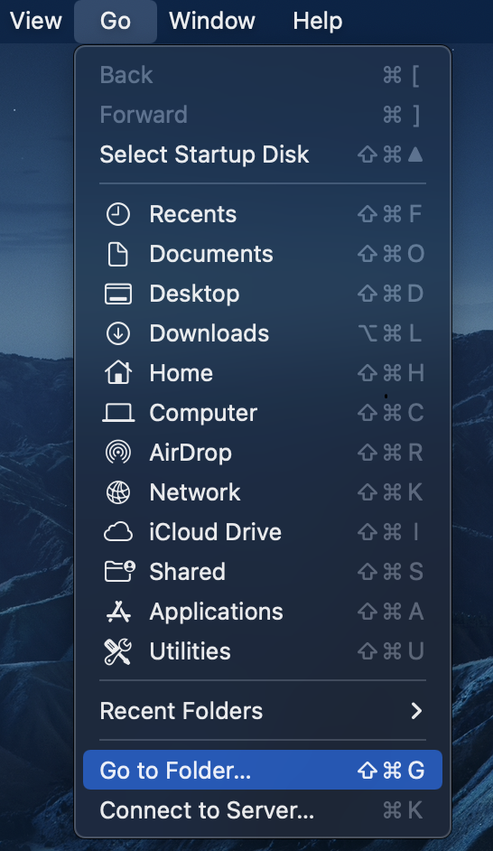 1. Mở cửa sổ Go to Folder bằng cách: ở phía trên góc phải của màn hình, chọn Go 🡪 Go to Folder (như hình) hoặc sử dụng tổ hợp phím Shift + Command + G